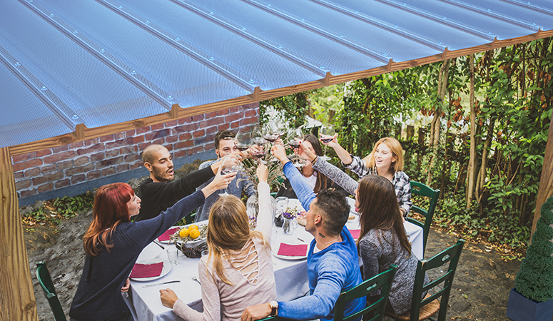 Die 2,8-mm-Überdachungsplatte mit einzigartiger Wabenstruktur wurde speziell für Pergolen, Terrassen und Außendächer entwickelt. Sie bietet außergewöhnliche Witterungs- und Hagelbeständigkeit und sorgt für dauerhaften Komfort. Die einfache, kostengünstige Montage direkt auf Sparren (optional mit Pfetten) ermöglicht eine moderne, stilvolle Überdachungslösung mit natürlichem Licht, minimaler Wartung und maximaler Benutzerfreundlichkeit.