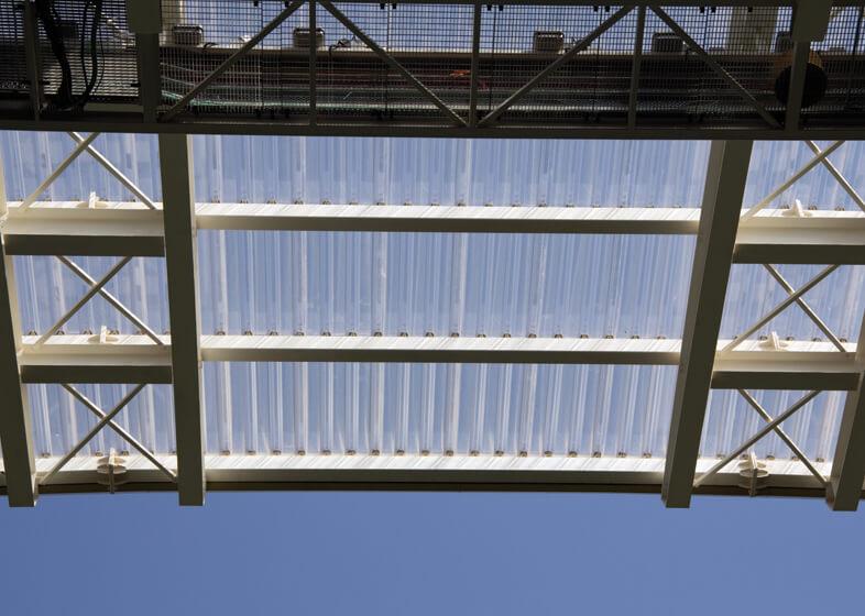 אצטדיון סמי עופר הוא האצטדיון הראשון בישראל העומד בקריטריונים המחמירים של אופ"א. לוחות סנטף באורך 11 מטר מקיפים סובבים את כל הרוחב של הטבעת הפנימית של גג האצטדיון, ויוצרים מראה אלגנטי על ידי מניעת חפיפות של הצללה. בנוסף לכך, צוות התמיכה בפרויקטים של פלרם תכנן רכיב חיבור יחודי הניתן להתקנה ישירה על המבנה הראשי, וחוסך בכך עלויות בנייה ניכרות.