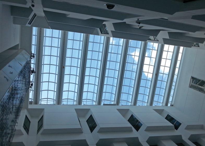 Palsun flat polycarbonate sheets were used as double glazing in a classic barrel-vault skylight at the prestigious headquarters of the Central Bank of Cyprus. The bluish breeze tint of the panels reduces heat buildup in the main hall by reflecting most of the Infrared solar radiation, without compromising the clear view to the sky above.