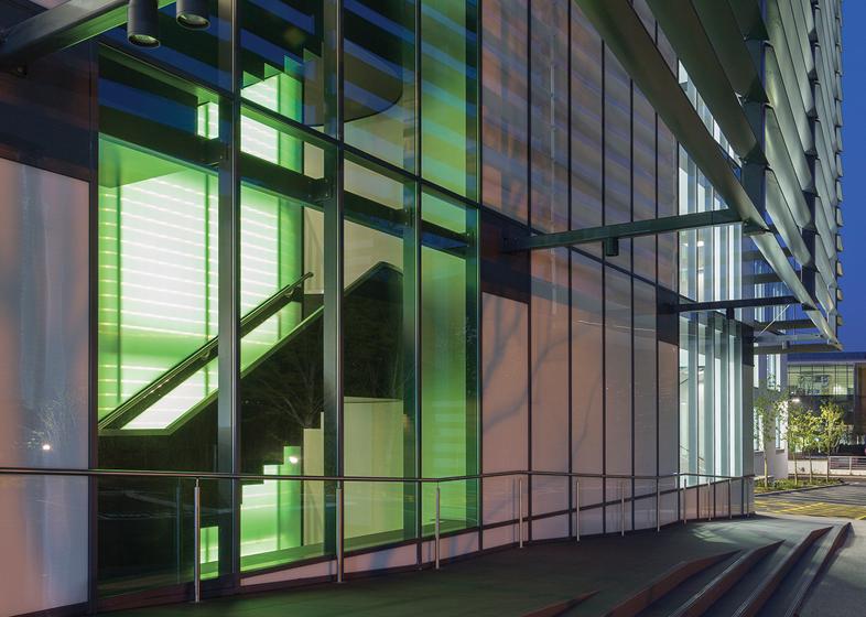 This project is comprised of a new two story extension to a concrete composite construction bearing on the steel frame which is extended upwards. The existing brick cladding was removed and the structure re-clad with curtain walling.